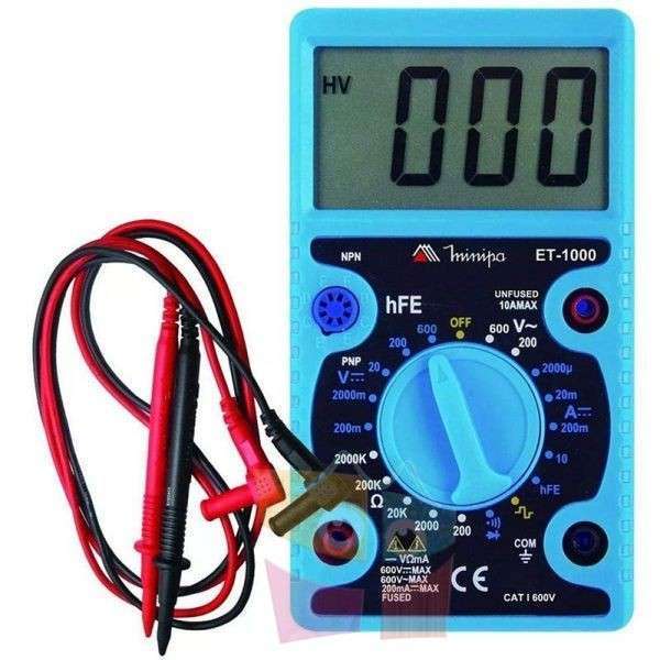 Destacado por ser pequeño, portátil y tiene una pantalla de 3 1/2 dígitos. Este equipo se puede utilizar en voltaje CC / CA, corriente CC, resistencia, prueba de diodos, continuidad, mediciones de transistores hFE y también tiene función de generador de onda cuadrada.
